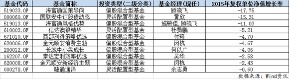 去年混合型基金中“混得最差”的是海富通国策导向(519033),年度收益率为-17.75%。与此同时,同为基金经理顾晓飞管理的另一只基金海富通风格优势(519013)亦不幸上榜,年度收益率为-11.03%。