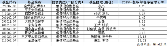 去年保本型基金表现不错,成立一年以上的保本基金全部获得正收益,最差的金元顺安保本A(620007)也获得了4.2%的回报。