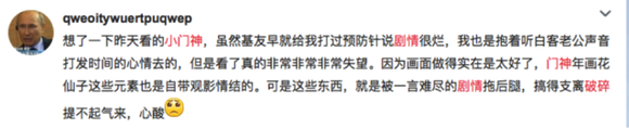 观众诟病的是,由于双线叙事,使得《小门神》的故事线游移在天上与人间变得支离破碎,人物也因为没有聚焦感而显得不够出彩,人物关系因为足够的情感铺垫而显得莫名其妙。
