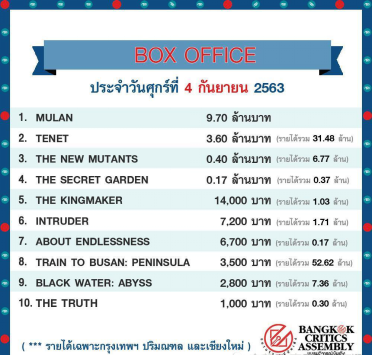 9月4日《花木兰》在泰国上映第一周就打破了泰国今年首映票房记录。而在中国港台地区,尽管因为被政治议题绑架遭遇了网友抵制,影片在台湾地区上映的首个周末票房也达到3400万台币,登上新片票房冠军。