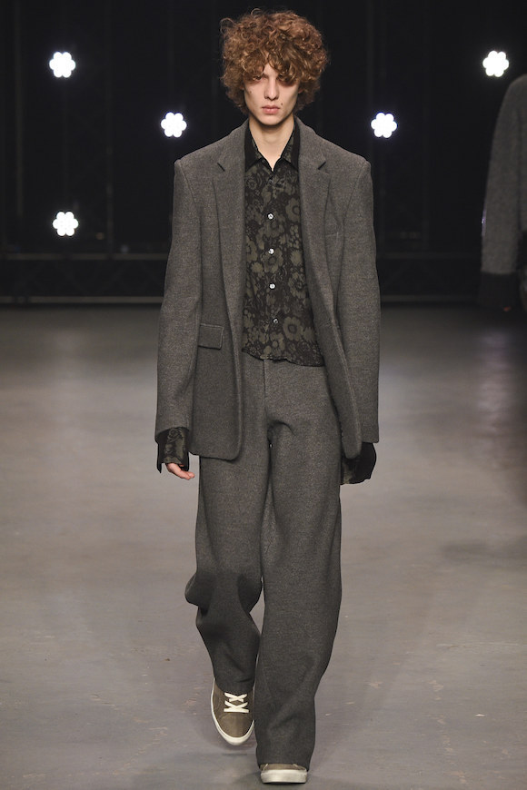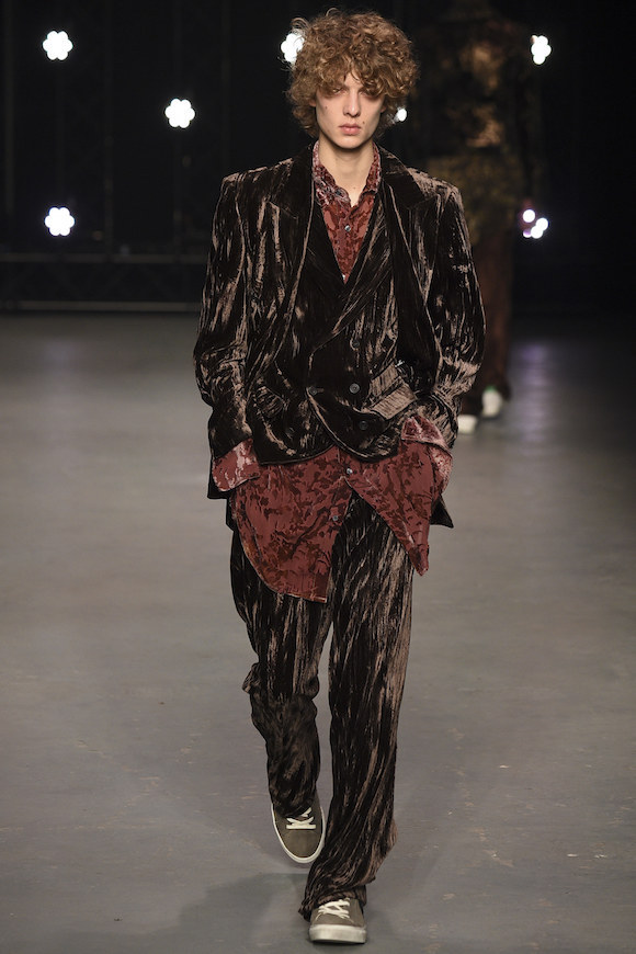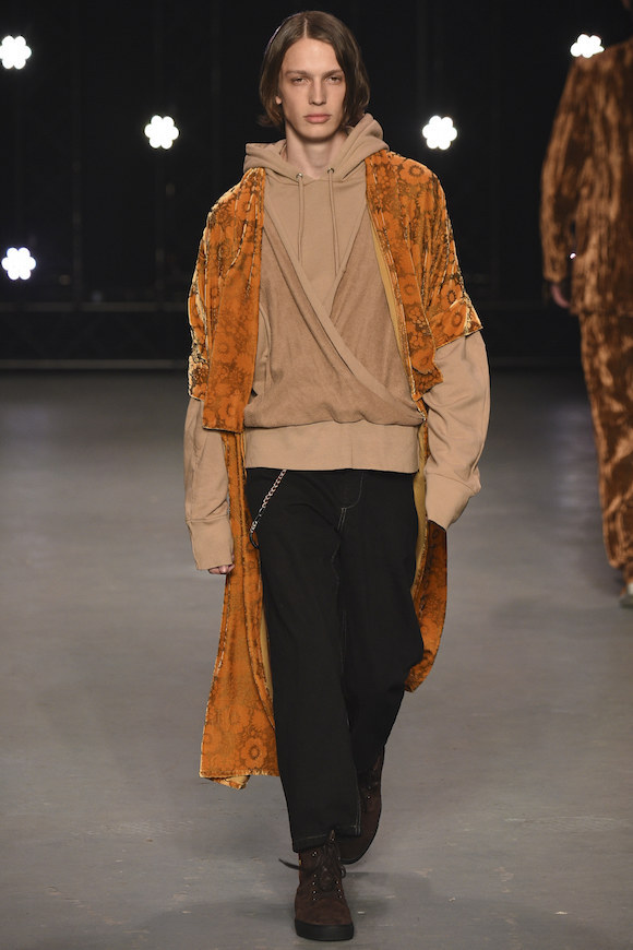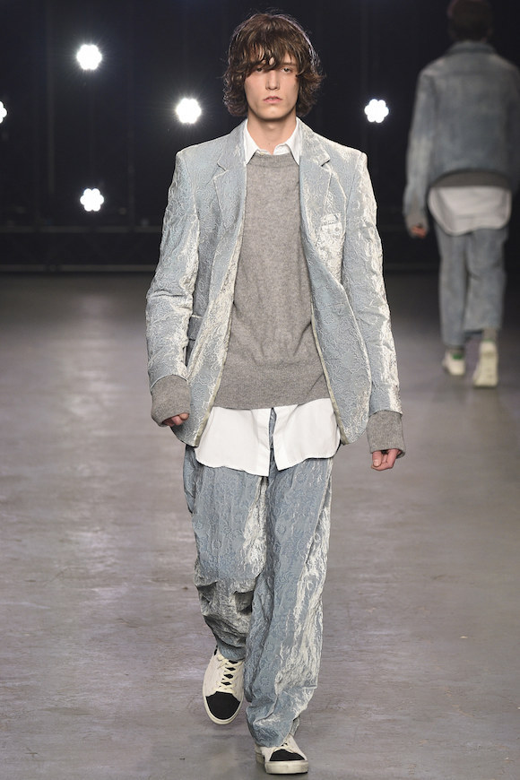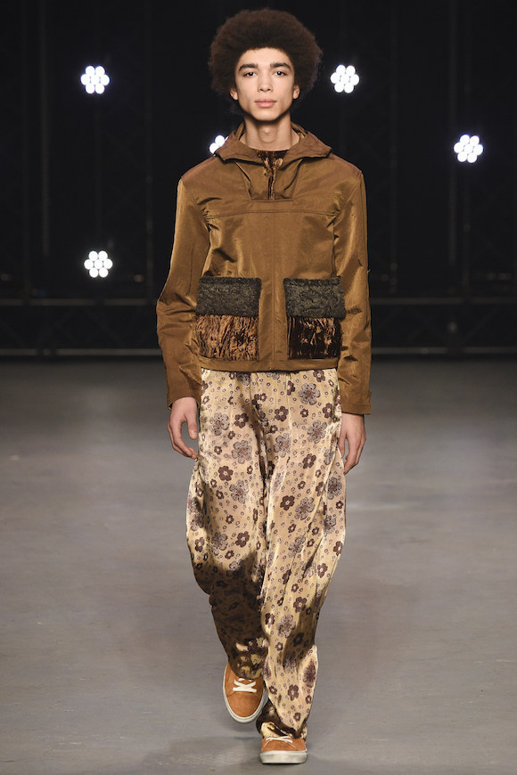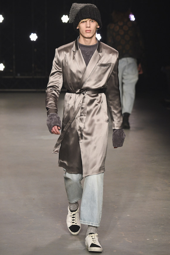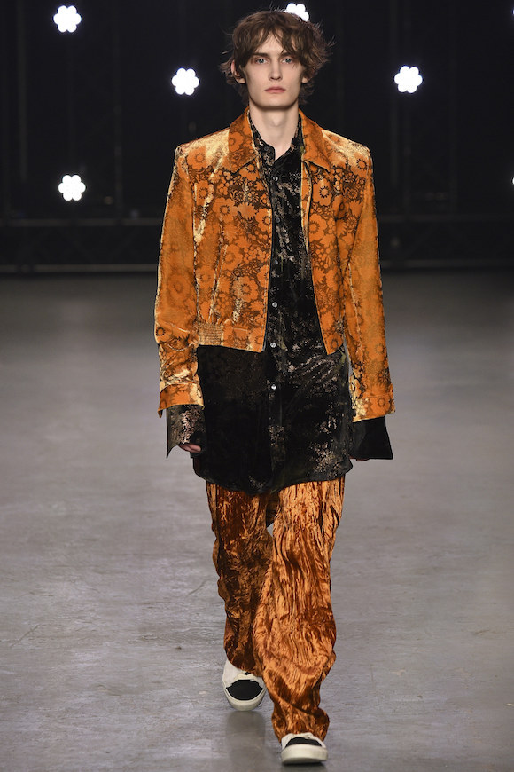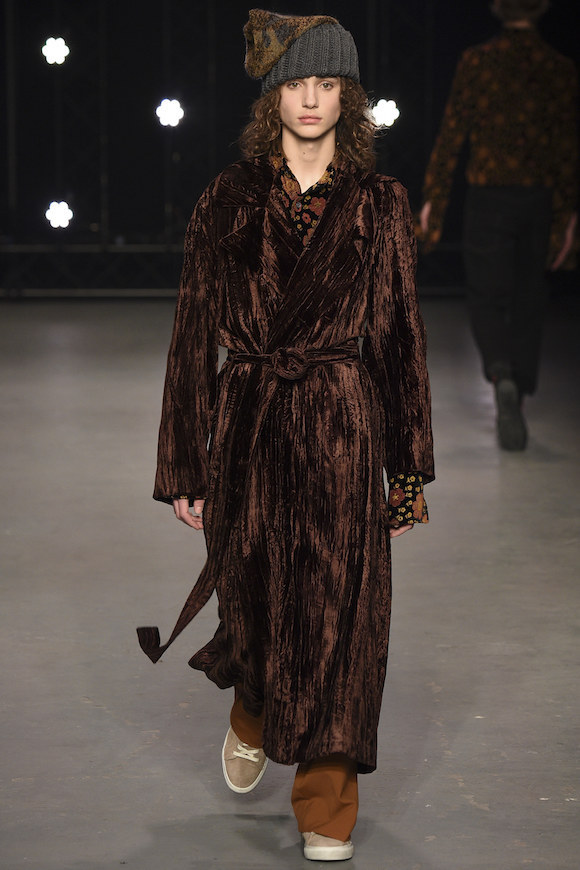头发没梳,索性就让它们蓬松地胡乱飞在脸上;天气太冷,那就把手边的衣服都套在身上;实在懒得花精力思考身材比例,Oversized 从到到脚贯彻到底也没什么大不了。在 Topman 2016 秋冬秀场上,可以看到被广泛使用的大地色调、丝绒材质和宽松的版型,这让年轻的男模们仿佛一群逃课在家的坏学生,他们玩世不恭,通常酷爱英式颓废摇滚。