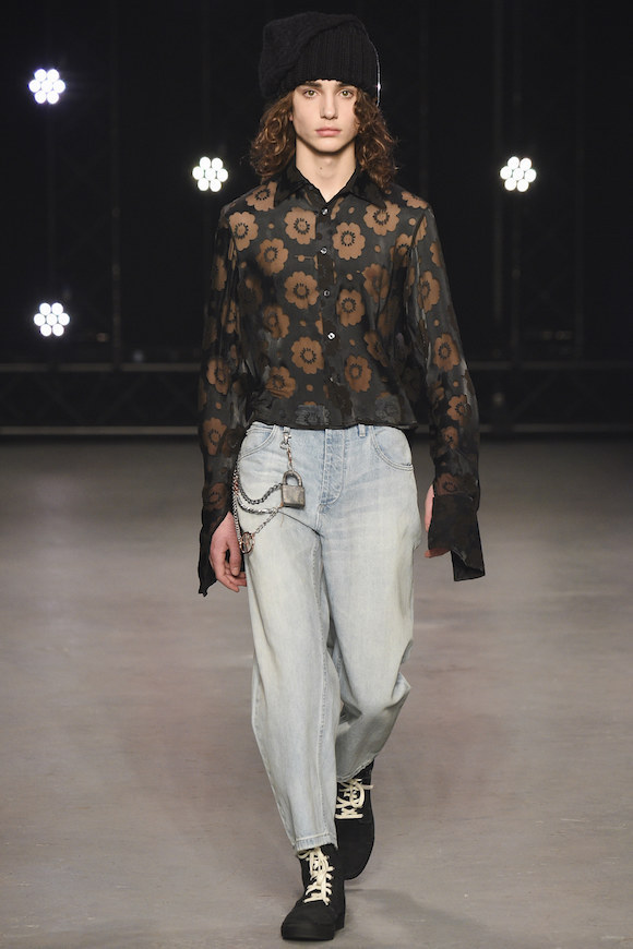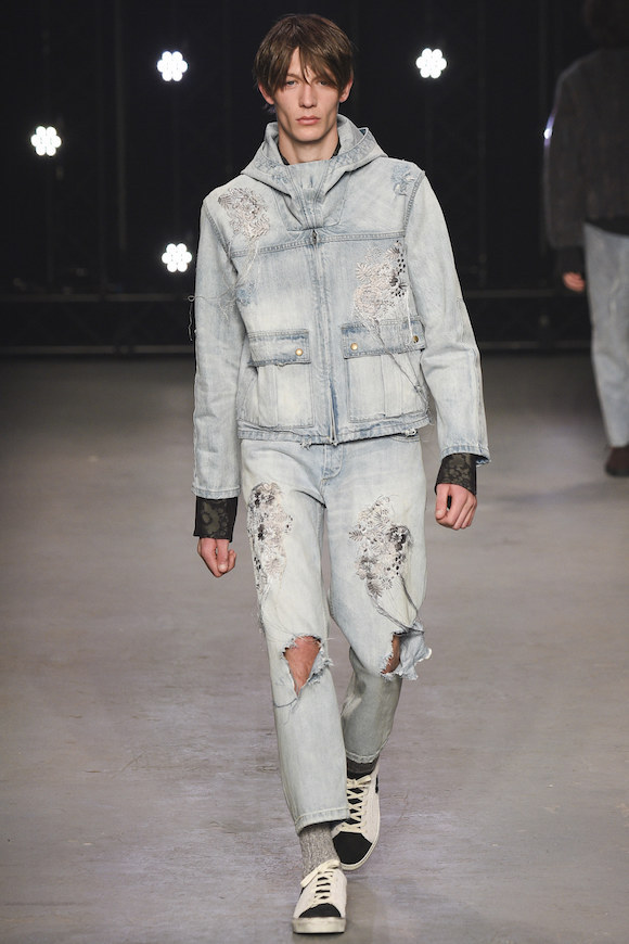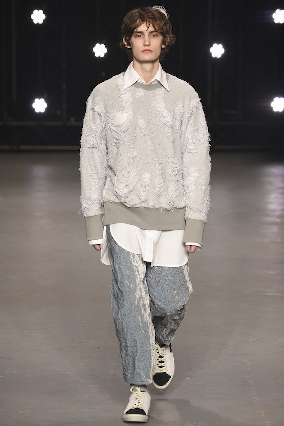 这一季是 Topman 致敬 90 年代风潮的作品。在那个年代,布里斯托尔的学生正在尝试推动艺术改革。年轻人们找不到什么好的方式,就用无所事事表达意见。他们白天在大街上闲逛,晚上流连在夜店,穿的正是各种宽松的破洞牛仔服和随便套头的毛衣。