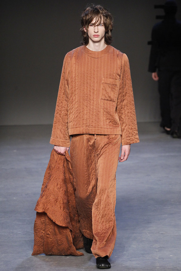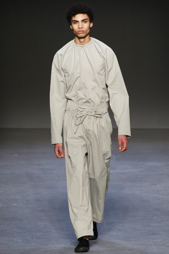 Craig Green太好辨认,轻柔材质配上流线型的剪裁,有人说他是最会设计工作装的人,然而那种藏在针脚里的静默和隐忍,又与职业装常体现的锋芒毕露完全无关,反而有些仙风道骨。
