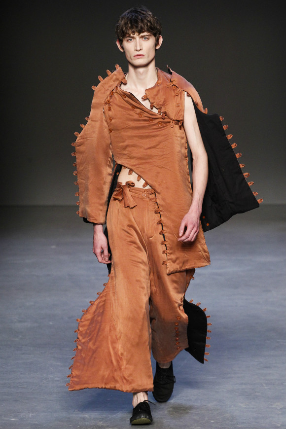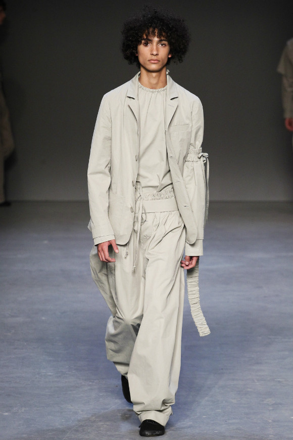 夹克、风衣、单色套装、错落有致、飘带,这些都是人们提到 2014 年获得英国时装大奖的年度新人男装设计师 Craig Green 时最容易想到的词。2012年从中央圣马丁毕业后,Craig Green 的作品就一直在业内备受瞩目,甚至已经成为了纽约大都会博物馆和伦敦 V&A 博物馆的藏品。