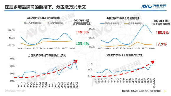 因此,整体分区洗市场呈现出一个需求提升明显、但竞争结构相对稳定的态势。预计2020年整体分区洗市场将持续活跃,零售额将达到14亿元。