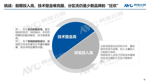 展望分区洗市场未来的发展,随着消费水平的不断提升以及消费群体的代际更替,消费者对品质生活的追求也逐步提升。同时,对于企业而言,虽然分区洗衣机具有高端差异化、高溢价能力的优点,但同样的也具有高技术壁垒、高研发投入的特点。