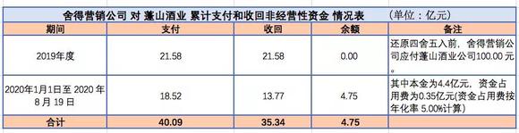 据了解,天洋控股曾向舍得酒业出具承诺函,称天洋控股及天洋控股的关联方将于2020年9月19日前,将前欠款及相应资金占用费全部归还舍得营销公司。