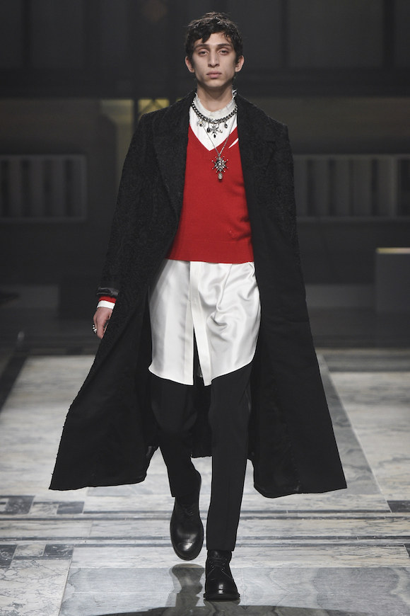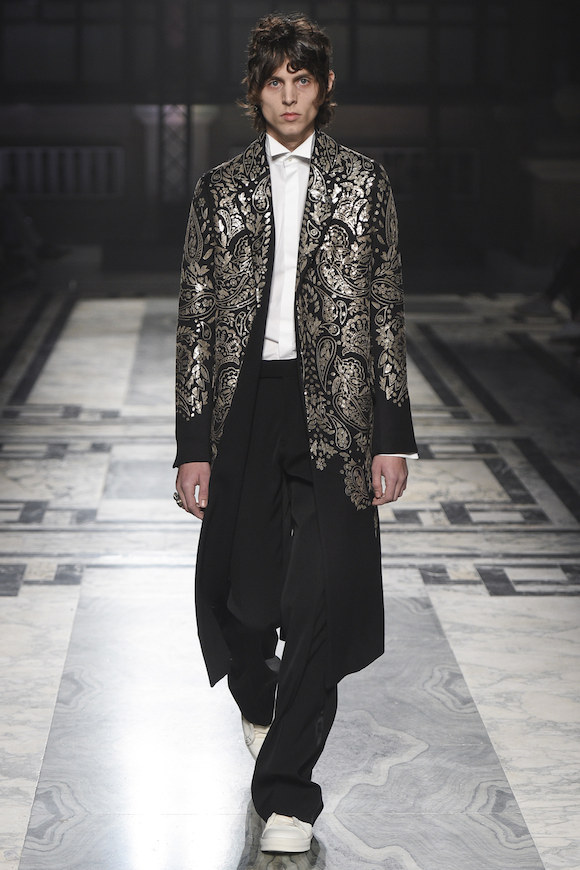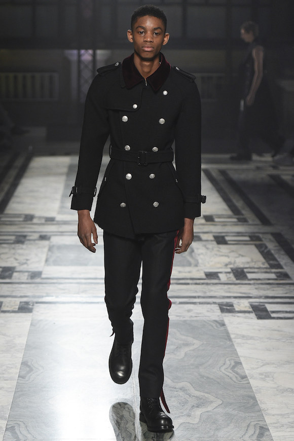 有关Alexander McQueen的故事讲起来总觉得有些凄婉。自2002年开始,这位才华出众的英国设计师就开始率领品牌去到巴黎做秀,8年后,陷入情绪问题的麦昆选择了死亡。他没有看到,2016年的1月10日,他一手创立的品牌又回到了英国家乡,在伦敦距离大笨钟不远的中庭办了一场男装秋冬系列发布会。这是品牌13年来首度回到英国办秀,2月的女装发布会依然会在伦敦举行。