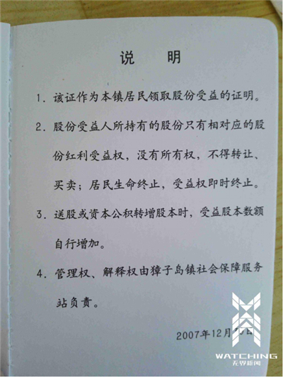 獐子岛集团在上市后,岛上居民作为集体的一员,每人有1000股受益权,后增加到6000股。根据獐子岛镇政府发的《股份受益权证》说明显示,持有人只有股份红利受益权,没有所有权和继承权。