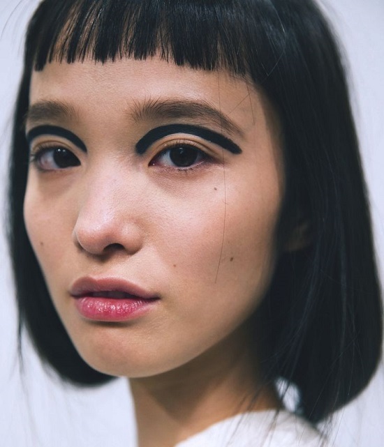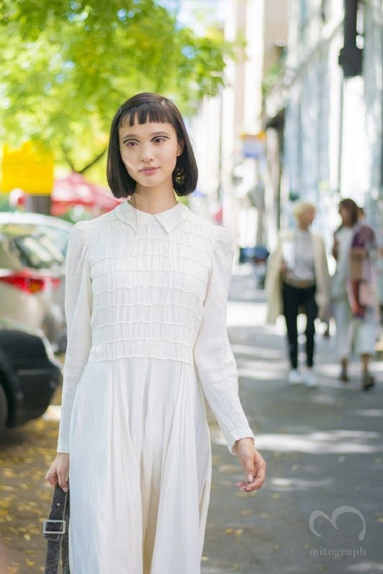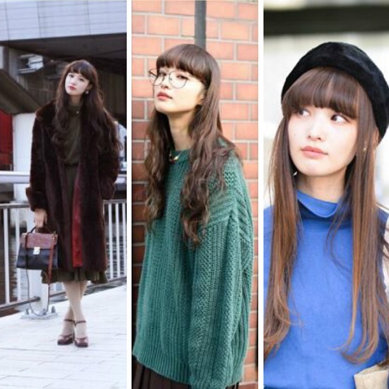 另外一位出众的二次元萝莉刘海少女是日本名模水原希子的妹妹水原佑果。她属于额头偏高的姑娘,把刘海剪到眉毛上方的高度显得刚刚好,没那么厚重。