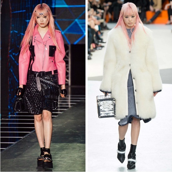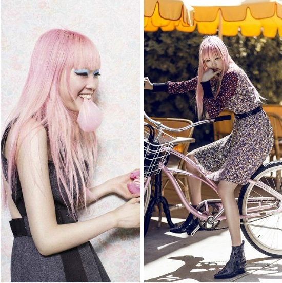 Fernanda Ly是个华裔,平时就很爱玩Cosplay。虽然长得不算好看,也只走过几场秀,但就凭着这个粉色齐刘海造型也勇夺Models.com年度突破模特大奖。她给亚洲女孩做了正确的发型示范:如果脸部轮廓不够分明的话,亚洲人深色的发色还是会显得太过厚重,像Fernanda Ly那样染浅色的头发,最能撞出特别的效果。