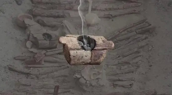 2013和2014年在帕米尔高原东部塔什库尔干地区发掘了吉尔赞喀勒墓地,该遗址具有明显的宗教特征与仪式性建构,地表保留有大面积错落有致的黑白石条遗迹,以及圆形封土堆,封土堆下有一圈或两圈的石圈,火坛内普遍焚烧过致幻植物——大麻。图/巫新华、Science News