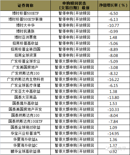 倒不是这些QDII业绩多么好, 上图暂停申购或限购的基金,除了投资海外债券的QDII,也都是“负收益”。