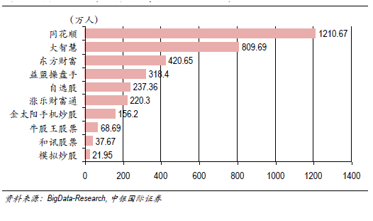 其次,同花顺在移动端上的流量优势,将是其未来业务增长的基本保证。值得一提的是,在东方财富、大智慧和同花顺这三家中,前两者已互联网券商化,只有同花顺一直在金融信息服务商这一条路上深耕。