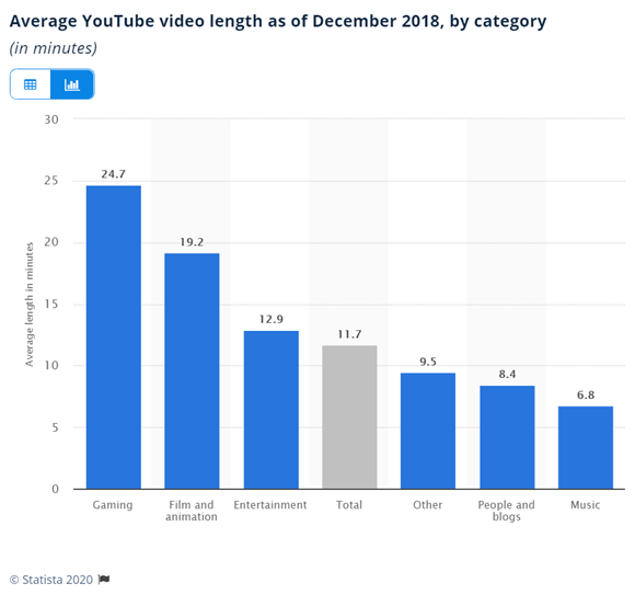 https://www.statista.com/statistics/1026923/youtube-video-category-average-length/