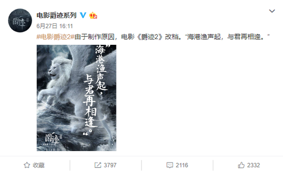 2018年,郭敬明导演的《爵迹2》在上映前夕突然因“制作原因”宣布撤档,从此再无音讯。