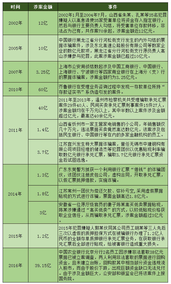 票据案件并非个案,几年前的齐鲁银行60亿伪造票据案件,以及河南多家农信社有万亿票据未体现等都是大事件。同时,央行及银监会从2009年以来几乎每年都会下发票据通知,警示各种违规票据业务。