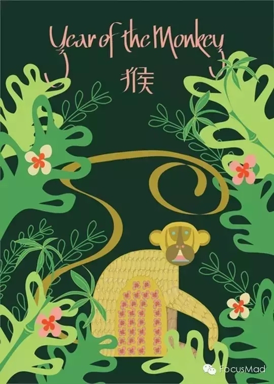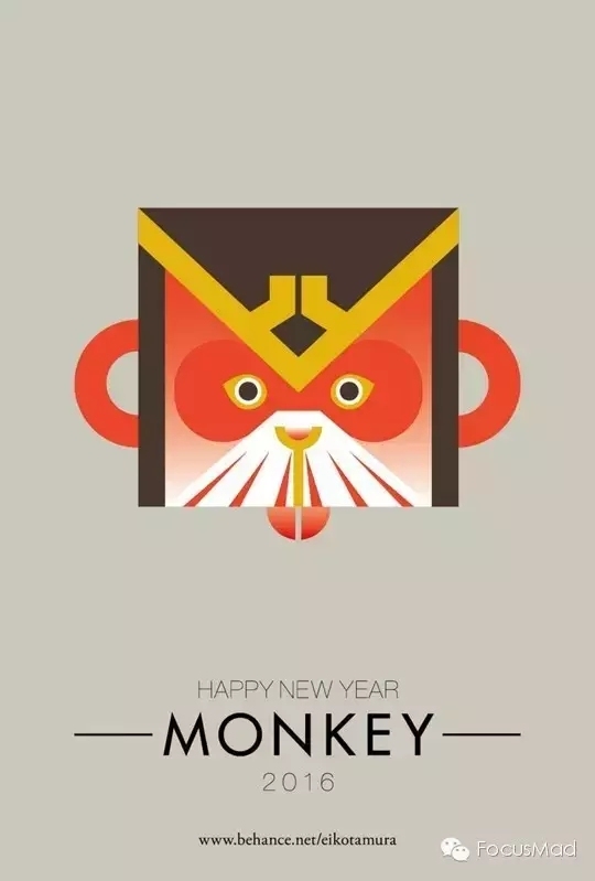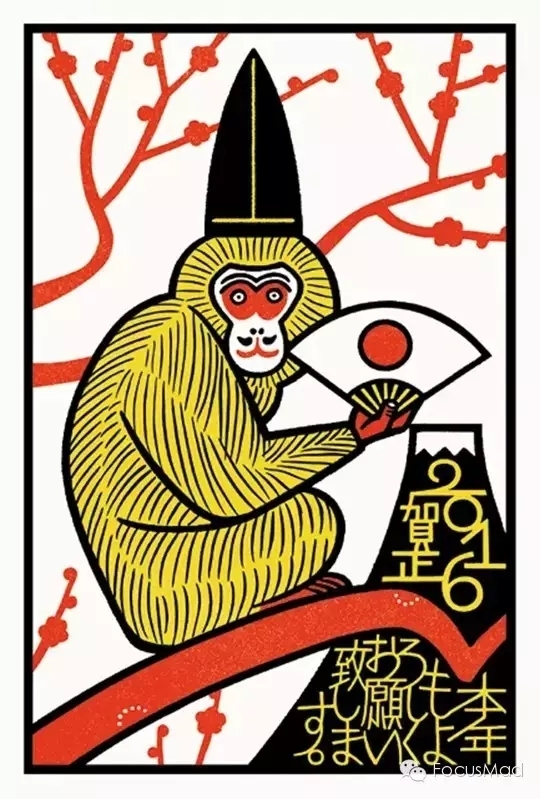 (插画和平面设计师MinoruArita的时尚猴年卡片)