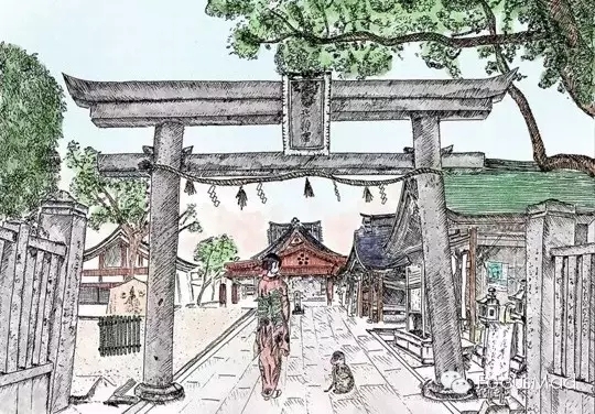 (设计师Eiko Tamura的明信片猴子脸结合富士山的形象)