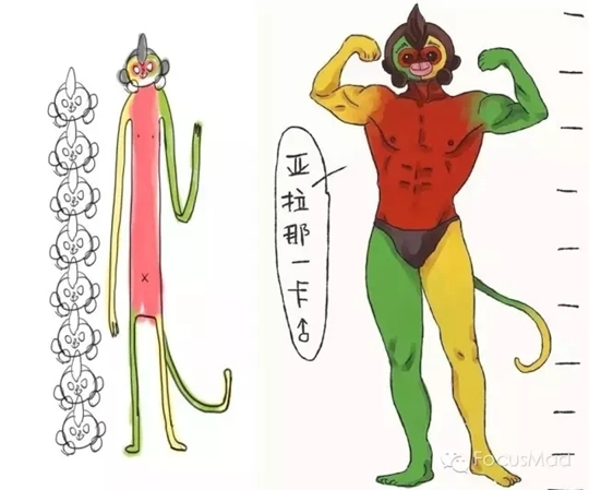 “仅仅一张设计稿是不够的,想当网红还要借助强势的平台、然后再进行跨平台传播。2016央视春晚正需要一个吉祥物,借这个12年一遇的机会帮你上位。但是,要先给你起个中国人都喜欢的名字,就叫‘康康’吧!我要把你当做品牌打造,而且定位成猴圈最美的9头身模特”。