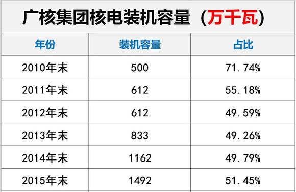 截止2019年末,广核集团各类机组装机容量达到5859万千瓦。截至2020年6月底,中国广核集团拥有在运核电机组24台,装机容量2714万千瓦;在建核电机组5台,装机580万千瓦;拥有国内风电在运控股装机1434万千瓦,太阳能光伏发电项目在运控股装机容量524万千瓦,海外新能源在运控股装机1078万千瓦。