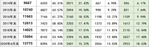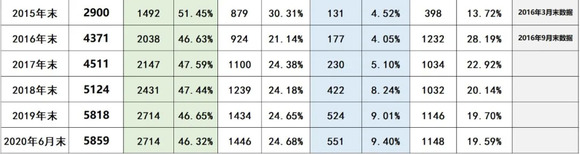 呈下降趋势,截止2020年6月末,其核电占比仅为46.32%。