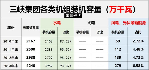 黑鹰光伏查阅公开资料发现,截止2020年6月末,三峡集团总装机量已达7765万千瓦,其中风电光伏等新能源装机规模为1285万千瓦,占比16.55%.