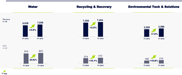 自誉为全球资源优化领域标杆企业的威立雅,目前拥有水务、固废和能源管理三大业务板块。2019年,最为核心的水务业务贡献了111亿欧元的营收,约占其当年总营收的四成。