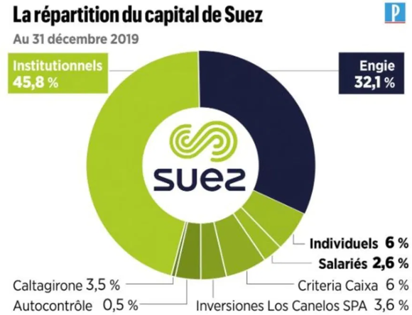 ENGIE是威立雅的最大股东,前身为苏伊士集团和法国燃气合并而成的苏伊士环能集团(GDF SUEZ),2015年进行了更名。