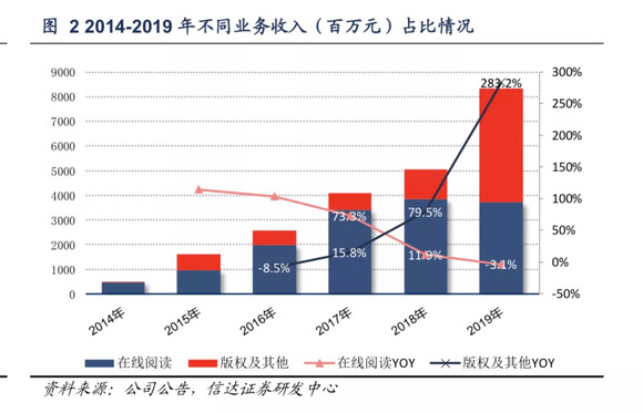 2014~2019年阅文营收结构