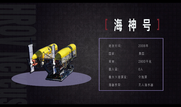 “海神”号,全海深无人潜水器,有远程遥控和自动作业两种模式,可以在深海极端环境下工作。