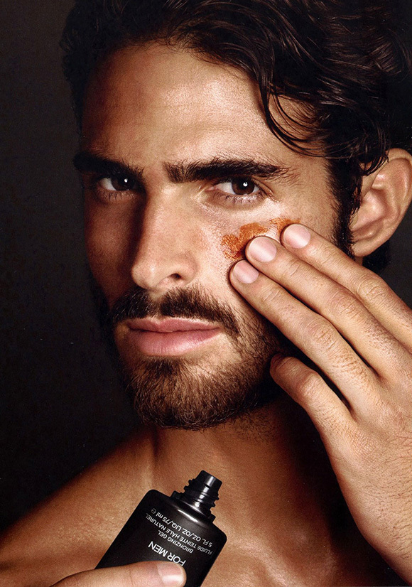 即便人们对男性皮肤的容忍度要高些,但痤疮,痘印,以及色斑这类宇宙常规题还是要认真应答。毕竟皮肤的处理就好比画布,是妆面一切颜色的基本。所以除了 Photoshop 外,现实中的你需要起码的护肤和底妆来平滑糙纹、肌理,美化一颗颗粗大到可以插花的毛孔。