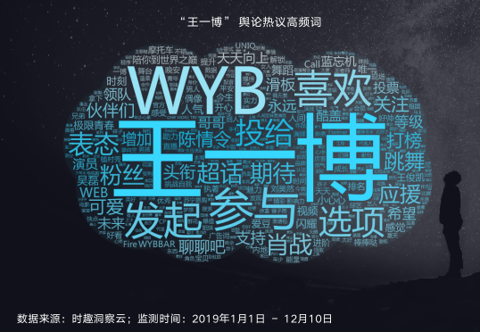 美誉指数方面,根据时趣洞察引擎对2019年“王一博” 舆论热议高频词进行检索分析,“王一博”舆论印象呈多样化,粉丝积极与其相关作品、代言进行互动。粉丝作为微博平台对明星表达支持的重要角色,其应援口号和相关行为将会大量围绕明星本身,“王一博”微博舆论高频词有13.75%来自粉丝应援,而且越来越多的粉丝愿意以投票的方式来表达他们的观点。