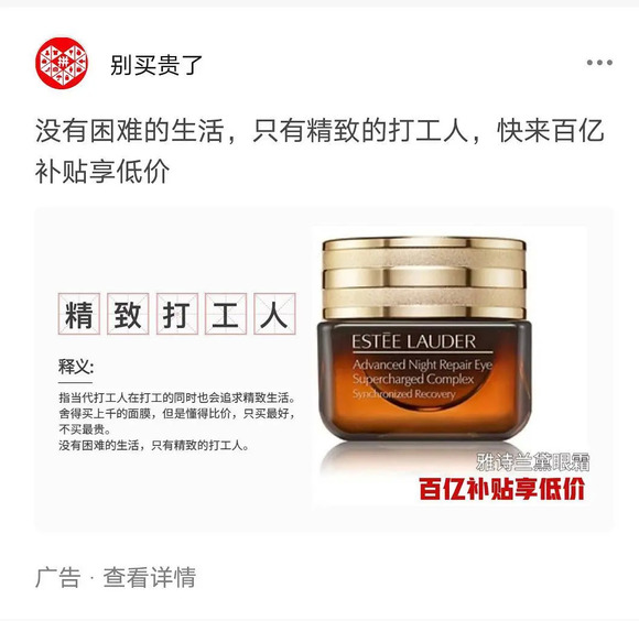 为了推动消费而以某种观念或标准绑架消费者的风险很高,广告理念对消费者的冒犯不仅会使用户心中的品牌形象一落千丈,有时还会引发其对商品的警惕和反思:商家那么努力让我买买买,这个东西真的是我需要的吗?这样的反思在用户们为支付欲望付出太多的时候最强烈。