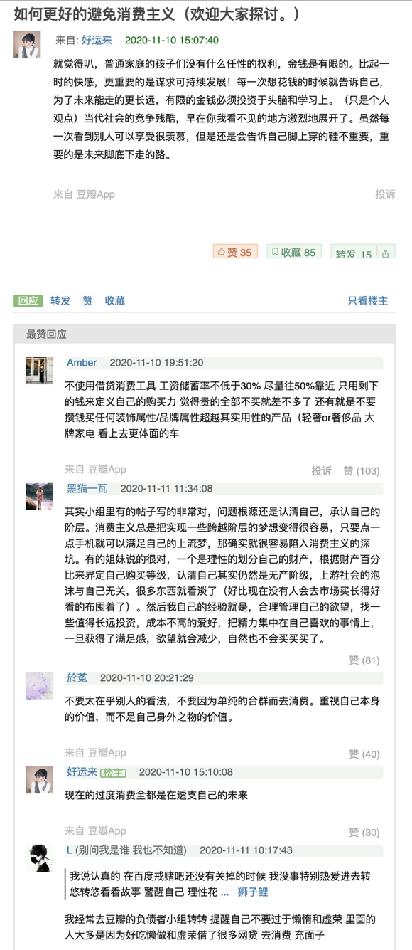 B站的视频和弹幕凸显了部分年轻人厌恶消费主义的强烈情绪和态度,而豆瓣的讨论更能令人明晰反消费主义人士对这一概念含义的认知。