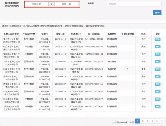 今年以来,上海整顿第一类医疗器械是箭在弦上。青眼在上海药监局查询了解到,仅今年8月1日至11月24日,诸多液体敷料、医用冷敷贴等第一类敷贴敷料类产品被取消了备案。