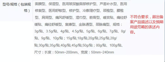 面膜、保湿、修复、消痘备案行不通。对于医用冷敷贴、医用冷敷眼罩、冷敷凝胶、液体敷料、喷剂敷料等产品,说明书、内外包装标签、产品宣传等信息载体中,《指南》指出产品型号/规格(包括产品名称、产品描述、预期用途/适用范围等)的表述内容均不应体现超出备案产品描述以及预期用途范畴的表述内容,例如:修护(修复)型、精华型、消肿止痛型、缓解过敏型、抑制色素沉着型、消痘型、抗炎型等。另外,上海药监局在示例中还提到,备案是以面膜型、保湿型、医用玻尿酸面部修护型等作为产品型号/规格,也不符合要求。