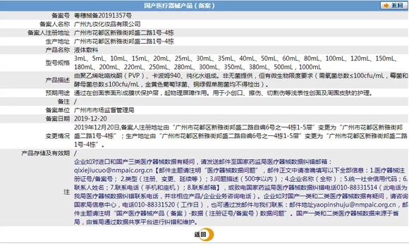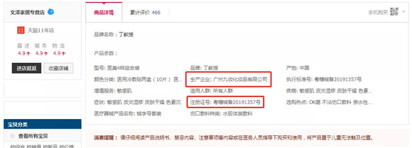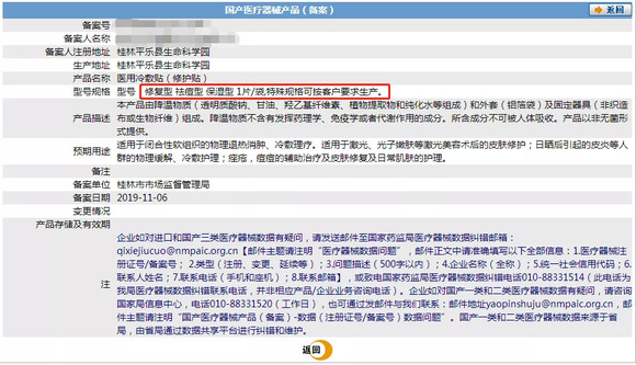 以“医美械字号护肤品套装”为例,该产品生产企业为广州九妆化妆品有限公司,据国家药监局国产医疗器械产品备案平台显示,该产品名称为液体敷料,预期用途是在创面表面形成膜状保护层,起物理屏障作用。用于小创口、擦伤、切割伤等浅表性创面及周围皮肤的护理。显然,液体敷料、冷敷贴等叫法对消费者来说丝毫没有吸引力,但若是用上“医美械字号护肤品”“医美面膜”,不仅通俗易懂,有了“医用”作为背书,宣传效果不言而喻。