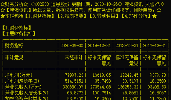 公开信息显示,道恩股份主营为研发、生产、销售热塑性弹性体、改性塑料和色母粒等功能性高分子复合材料,2020年前三季度营业收入33.07亿元,同比增幅65.88%;净利润7.8亿元,同比增幅514.52%。