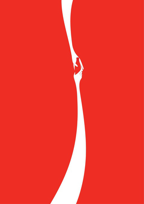 可口可乐公司标志性的红色背景和白色波浪形飘带演绎为分享一瓶可口可乐的两只手,完美表现出可口可乐“传递可乐分享精神”的理念,无论是在远方还是近看,不需一点文字也能知道是可口可乐形象广告。