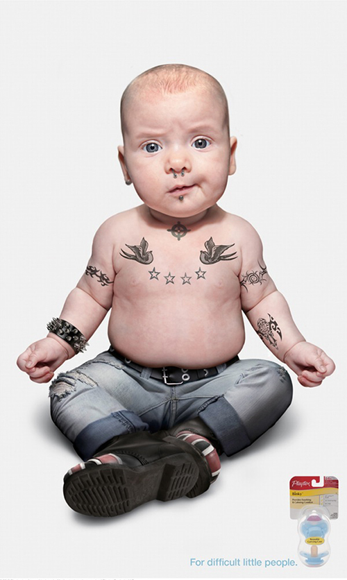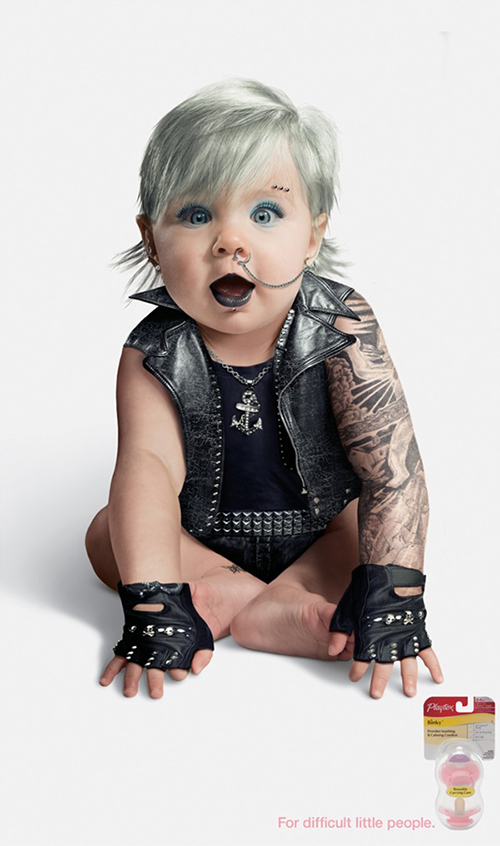 你的宝宝是乖宝宝吗?相信每一个妈妈在孩子哭闹时都会有统一的答案“不是”,葛瑞广告公司在2013年为倍儿乐(playtex)设计的广告利用这一点,推出自己的产品,让宝宝不再是黑帮分子,变回甜美可爱的乖宝宝。