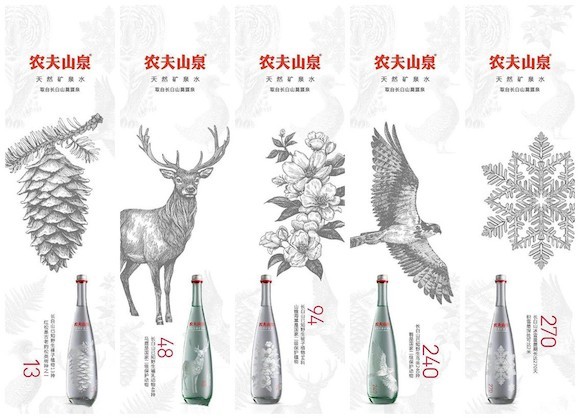 农夫山泉之所以推出高端水当然不只是冲着拿设计奖去的,这只是做高端水的一种营销方式。无论是瓶身设计还是限量概念的玩法,这些都与都法国品牌依云以及巴黎水很相似。