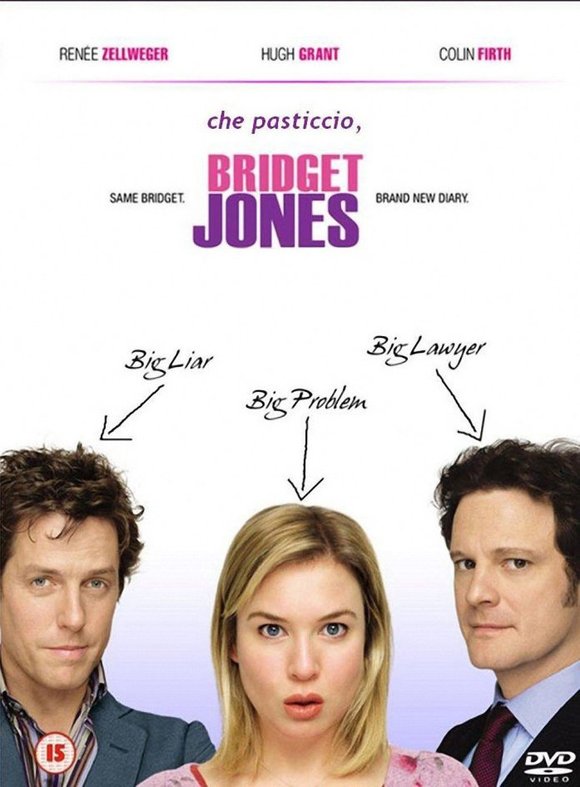 如果说戴维的改编强有力地推动了如今这个对《傲慢与偏见》疯狂痴迷的时代(这不算一个太大胆的推测,我看过的一切对《傲慢与偏见》的改变版本,都出现于1995年之后),那么可以说是海伦·菲尔丁(Helen Fielding)的《布里吉特·琼斯日记(Bridget Jones's Diary)是第一部启发了之后无数灵感的作品。菲尔丁经常这样愉快地承认,她从奥斯丁的小说中“掠夺了她的情节”。原著、改编与再创作之间的关系往往非常明了——布里吉特在1995年的电视剧里,曾对科林·福斯饰演的达西和她自己的马克·达西做出过比较——但当科林·福斯在2001年《布里吉特·琼斯日记》改变电影中饰演布里吉特的爱慕对象时,情况就变得有些复杂了。