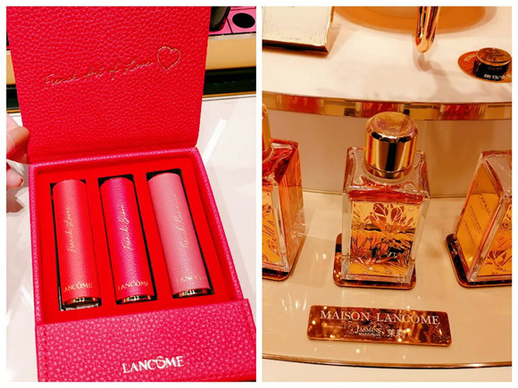 左为兰蔻新菁纯柔润丝缎唇膏套盒、右为茉莉香水