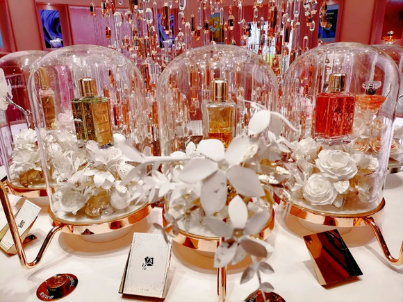 此外,香水区的体验方式更是别出心裁。门店在每一种香型的香水旁都设置了一个按钮,轻轻一按就可以从和鸟笼相连的花头喷出香味,实现无接触试香的同时,也大大增加了趣味性和可玩性。