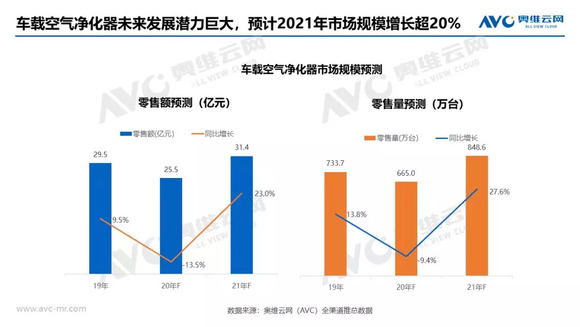预计2021年车载空气市场规模增长超20%,零售额超过30亿元。