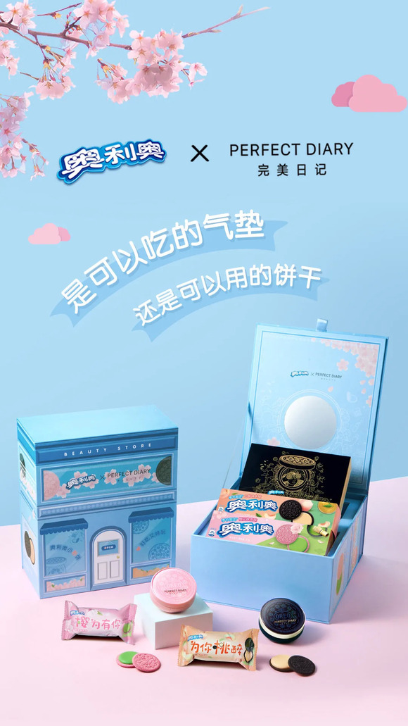 在品牌联名上,奥利奥更是一把好手,联名完美日记上架限定气垫霜;联名好利来推出奥利奥限定款甜品……通过不同品牌之间的“化学反应”赋予品牌多元的价值文化。