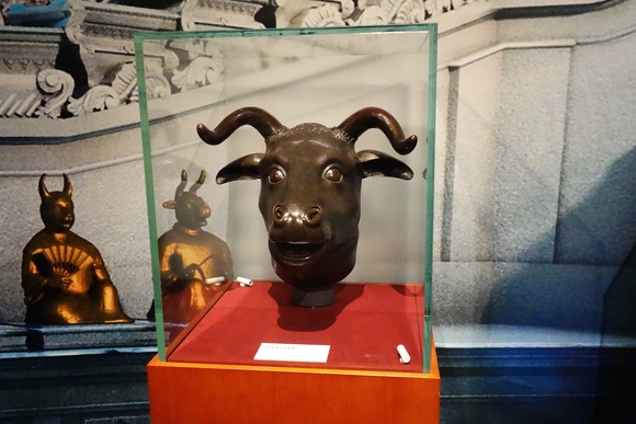 2020年12月4日,北京,马首铜像在圆明园正觉寺文殊亭陈列展出。图为展出的马首铜像。(图片来源:视觉中国)