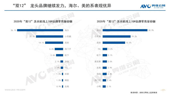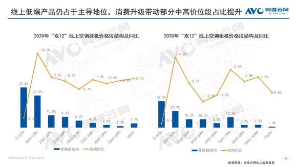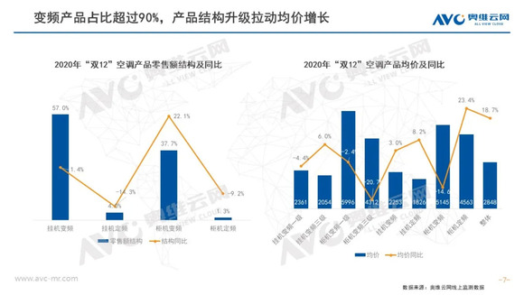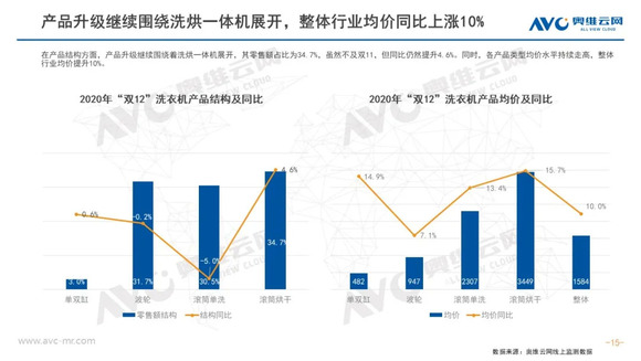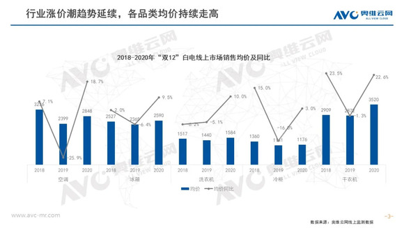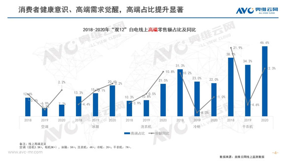 双12白电市场均价持续走高;同时消费者健康意识、高端需求觉醒,各品类高端占比提升显著。