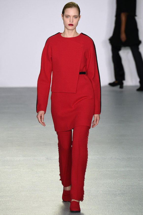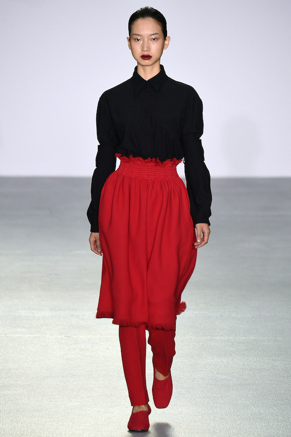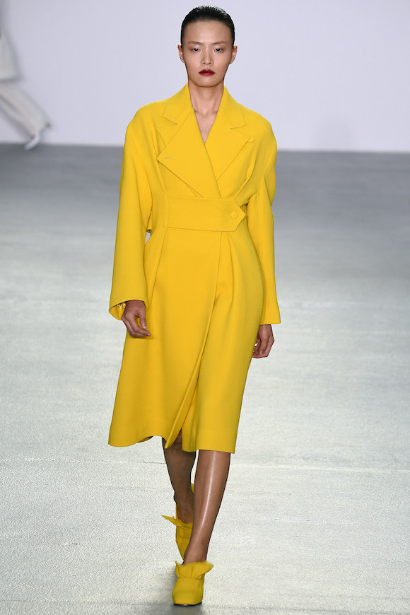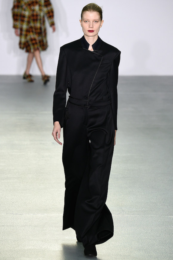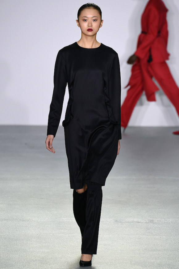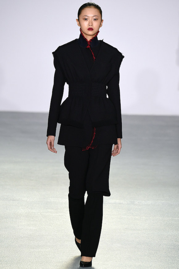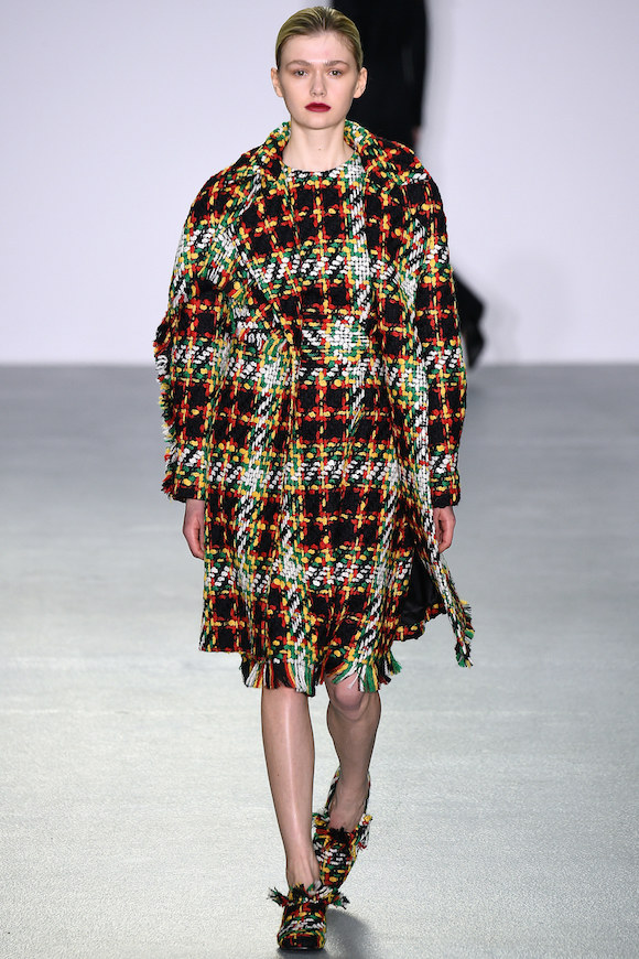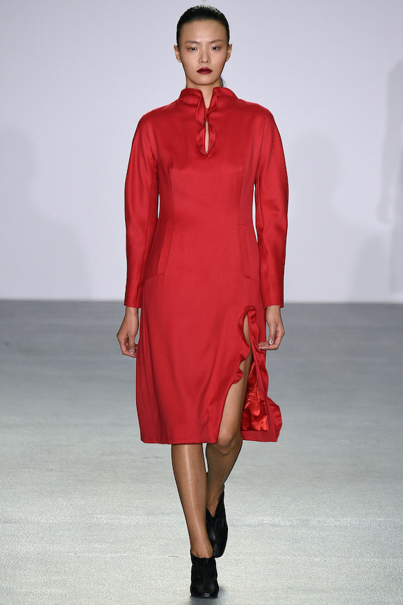 和 2016 春夏系列发布时一样,韩裔设计师 Jackie Lee 的个人品牌 J. JS LEE 又一次为伦敦时装周做了开场秀。不过,比起上一次带着些收敛的“温柔”,这一次发布秋冬系列的 J. JS LEE 显得更有自信和力量——开场就连走了三身饱和度极高的红色调设计,观众想要不被吸引都难。而随后出现的全黑、全白、明黄及格纹,也都给人以色彩厚重,视觉冲击大的感觉。